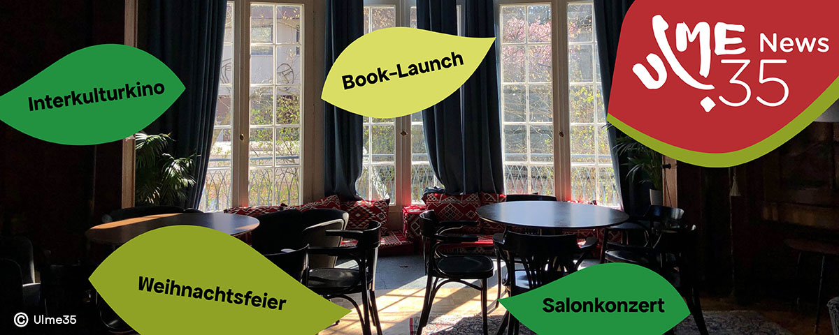 Zum Ende des Jahres gibt es noch einmal einige Veranstaltungen, zu denen wir euch herzlich einladen möchten: Ob eine bewegende Buchvorstellung der Artist-at-Risk-Stipendiatin Shahd Al-Shamali, Interkulturkino, lebendige Konzerte, unsere alljährliche Ulme35-Weihnachtsfeier oder eine Kunstausstellung der Sonntagsfrauen – kommt vorbei, erlebt besondere Begegnungen und lasst euch inspirieren. Wir freuen uns auf viele schöne Momente mit euch zum Jahresausklang!