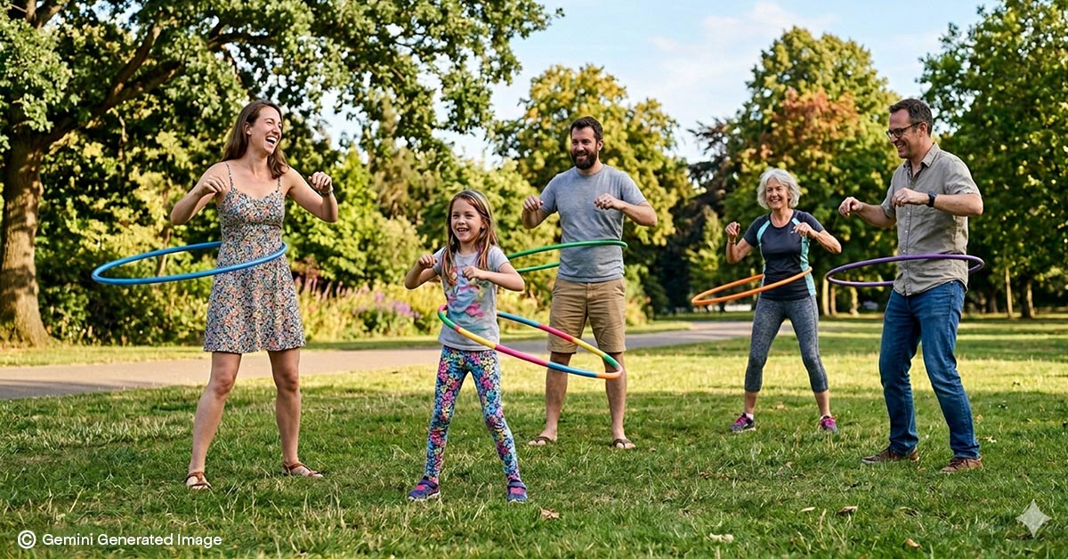 Jeden Freitag von 17 bis 18 Uhr bietet unsere Nachbarin Ursula im Garten des Ulme35 eine offene Hula-Hoop-Stunde an – kostenlos, für alle, ohne Vorerfahrung.