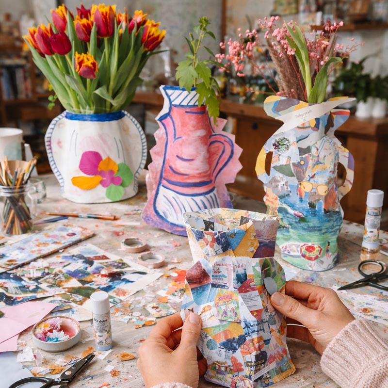 Du gestaltest und kreierst eine echte Vase aus Papier und Acrylfarben. Jedes Stück ein Unikat und unverwechselbar. Umdenken. Zulassen von Gedanken und die Entspannung fühlen. Du hast nicht nur einen Versuch. Sondern so viele, bis es Dir gefällt.