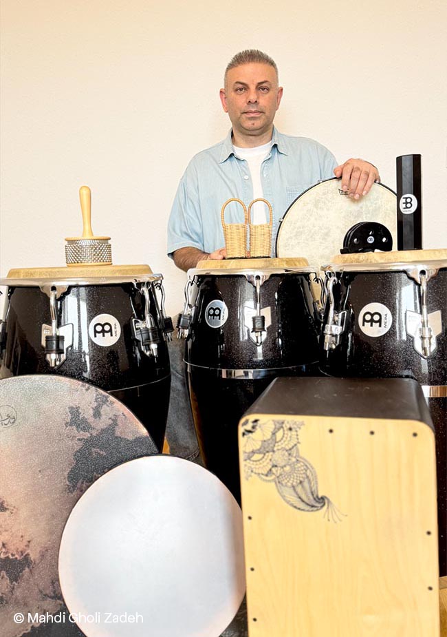 Zum Workshopleiter: Mahdi Gholi Zadeh (1979, Amol, Iran) ist Multi-Perkussionist, Lehrer und Musiker in Deutschland. Autor eines Buches über das Desarketen-Instrument. Seit 1997 auf der Bühne, lehrt er Rhythmus, gründete Romak Seda und organisiert Festivals. Er spielt in Ensembles wie Just Mad Big Band, Latin Band und Romak Group. Zurzeit unterrichtet er Perkussion an der Musikschule Zehlendorf in Berlin.