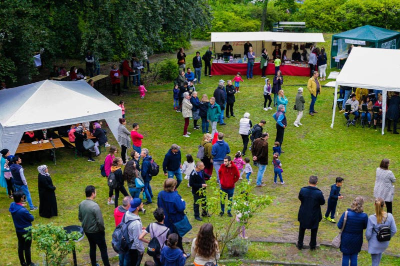 Sanfter Nieselregen, dazwischen aber auch ein kleines bisschen Sonne, gesellige Stimmung unter den Bäumen und Zelten, Helfer aus vielen verschiedenen Ländern an den Marktständen, bunter Musikmix im Hörsaal, eine eindrucksvolle Ausstellung der #Bleibistan Kampagne im Wintergarten, freudiges Werkeln und künstlerische Aktivitäten im Haus und viele glückliche Gesichter... Wir haben mit knapp 700 Menschen gefeiert! Vielen, vielen Dank an alle, die uns unterstützt haben!! Dieses Fest bleibt noch lange in Erinnerung.